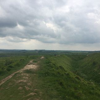 This is wide country with long distance views of the hills and the plain which reminded ET (and Richard Jefferies previously) of the sea. ET writes "The eye somehow expects it. There is something oceanic in their magnitude, their ease, their solitude, above all, in their liquid forms, that combine apparent mobility with placidity, and in the vast playground which they provide for the shadows of clouds." This certainly still feels true of the country bordered by Liddington Castle and Whitefield Hill to the East and the southern wall stretching from Coombe Down above Ogbourne St George along Smeathe's Ridge which joins up with the lower line of Burderop Down before proceeding west to Barbury Castle. ET goes on; "When they (the hills) do not curve, they make that almost straight horizontal line, which seen five or six miles off against a pale evening sky through clear or misty air, is so significant and so untranslatable...They have a hugeness of undivided surface for which there is no comparison to be found on the earth, and but seldom in the sky."